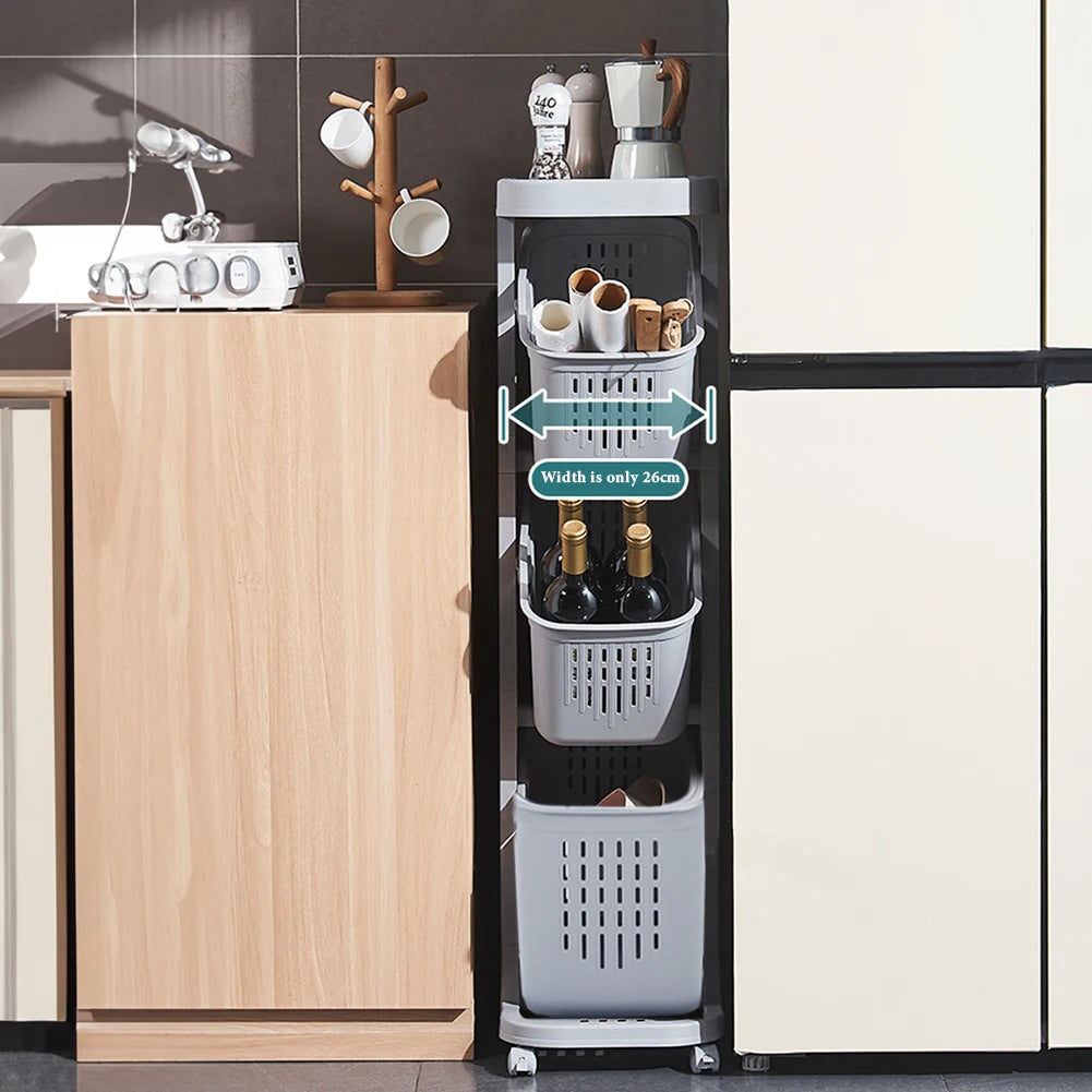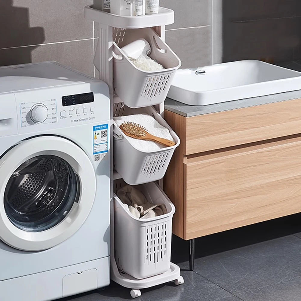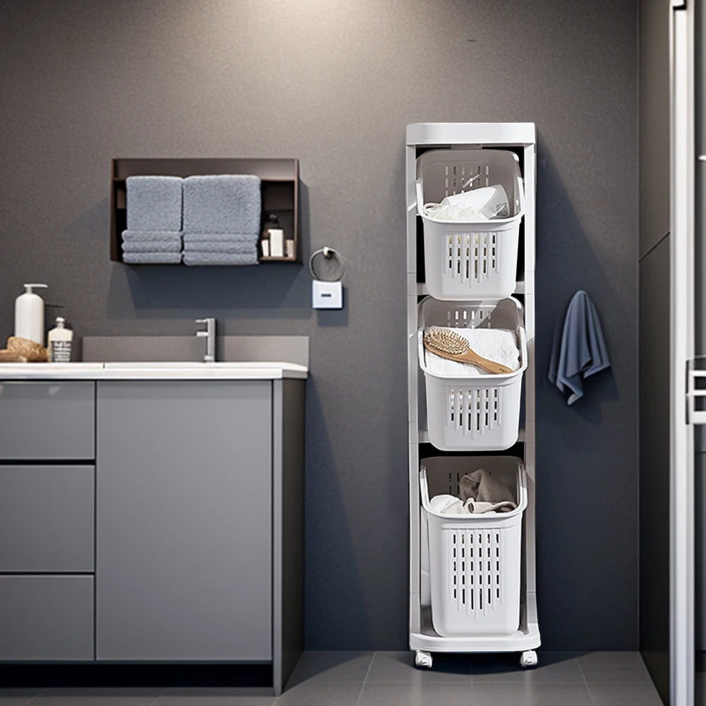 Designed for efficient home organization, this 4-tier laundry basket with wheels offers ample space to sort your laundry by type or family member. Its sturdy frame ensures durability, while smooth-rolling wheels provide effortless mobility, allowing you to transport laundry with ease. Ideal for streamlining your laundry routine, this multi-level basket maximizes storage without occupying excessive floor space.