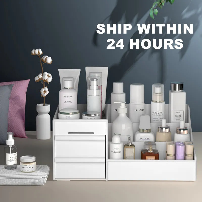 Efficiently organize your makeup with our Cosmetic Storage Box. With ample space for all of your cosmetics, this storage box keeps your products easily accessible and neatly arranged. Say goodbye to clutter and hello to a more organized beauty routine.