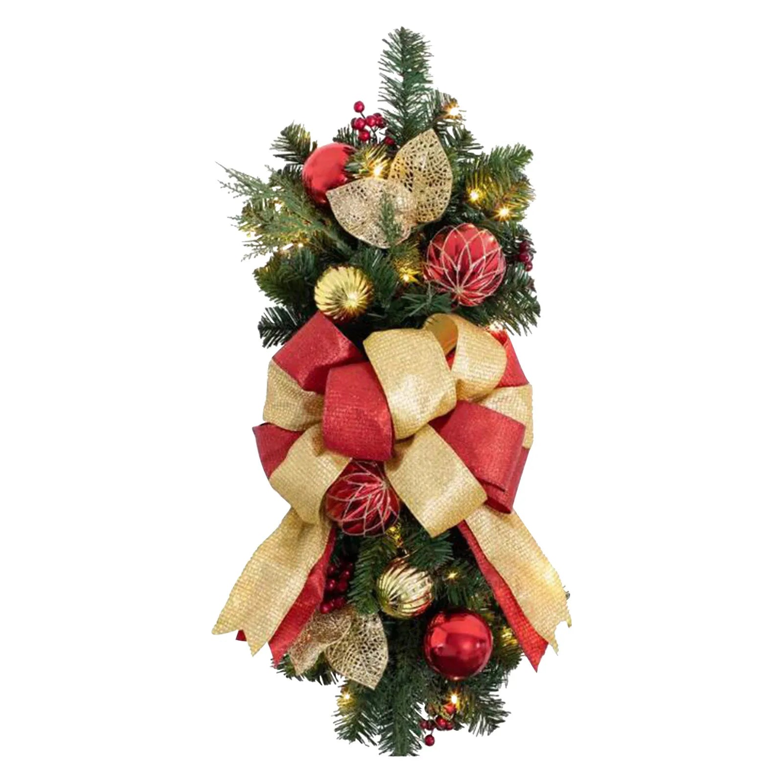With our prelit Christmas stairs decoration, you can easily add festive flair to your staircase. Featuring prelit detailing, this decoration brings holiday cheer to any room. Enhance the beauty of your home and impress guests with this charming addition to your holiday decor.